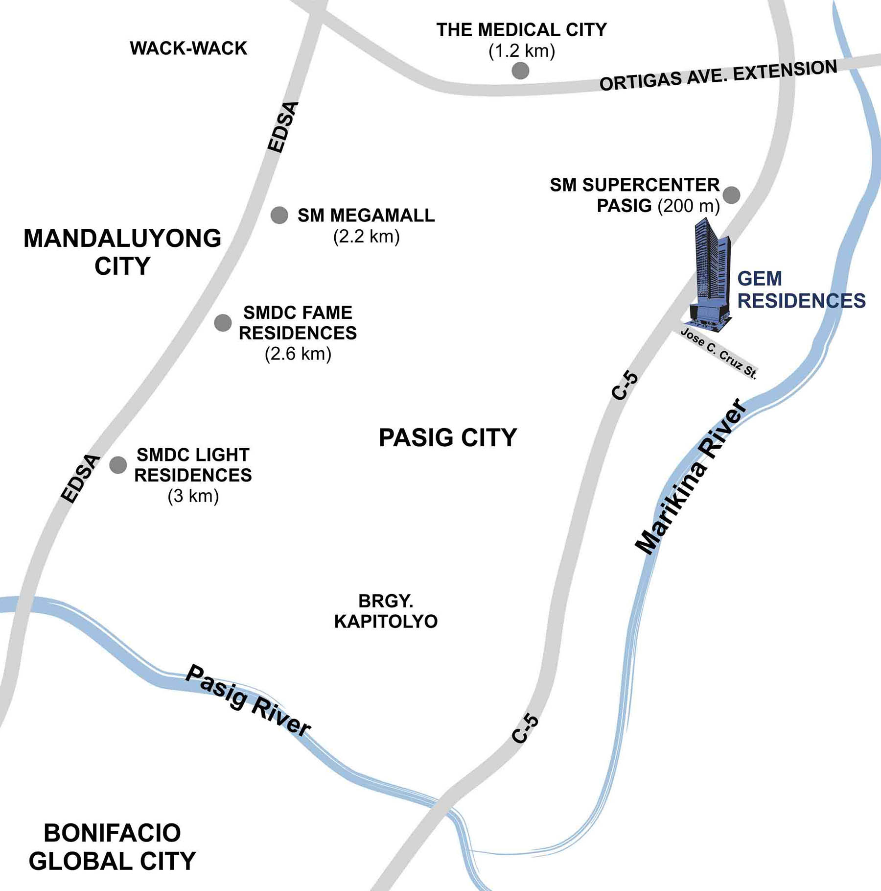 Gem Residences perfectly captures your modern aspiration for work-life integration. Standing gorgeously along C-5 Pasig, the thriving center of economic activity east of Metro Manila, Gem Residences brings you world-class amenities that cater to your need for both productivity and leisure. A living space that is purposely designed to bring together life's various facets (family, work, hobbies, me-time) in one seamless fusion in order to achieve balance and wellness to its residents.
