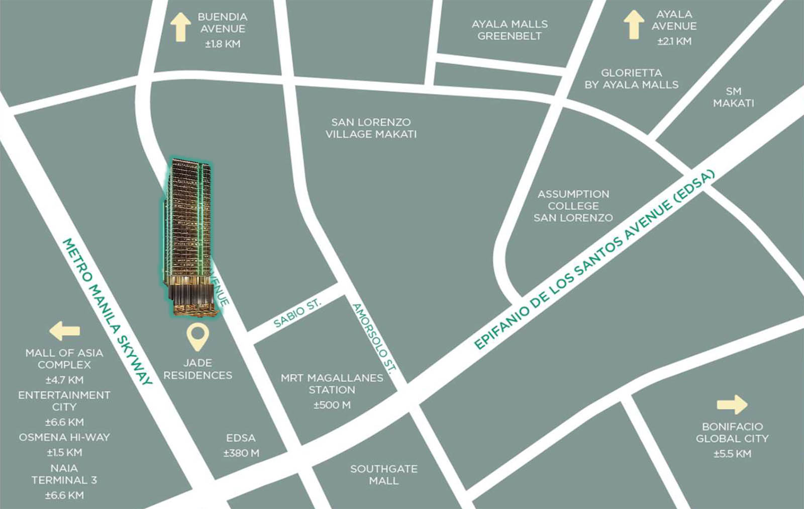 SMDC Jade Residences is strategically located in Makati, one of the most vibrant and thriving cities in the Philippines. Situated along Chino Roces Avenue, this residential development offers residents unparalleled convenience and accessibility to various establishments, businesses, and lifestyle amenities.
